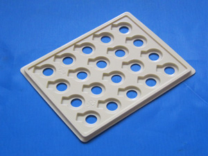 具有了減震、方便攜帶與運輸、綠色環(huán)保等特點,異形托盤采用的材料都為環(huán)保材料,從而節(jié)省了能源,產(chǎn)品工藝經(jīng)過生產(chǎn)設(shè)備將其達(dá)到一定厚度及干濕比,經(jīng)過轉(zhuǎn)模脫模等工序生產(chǎn)出異形托盤。